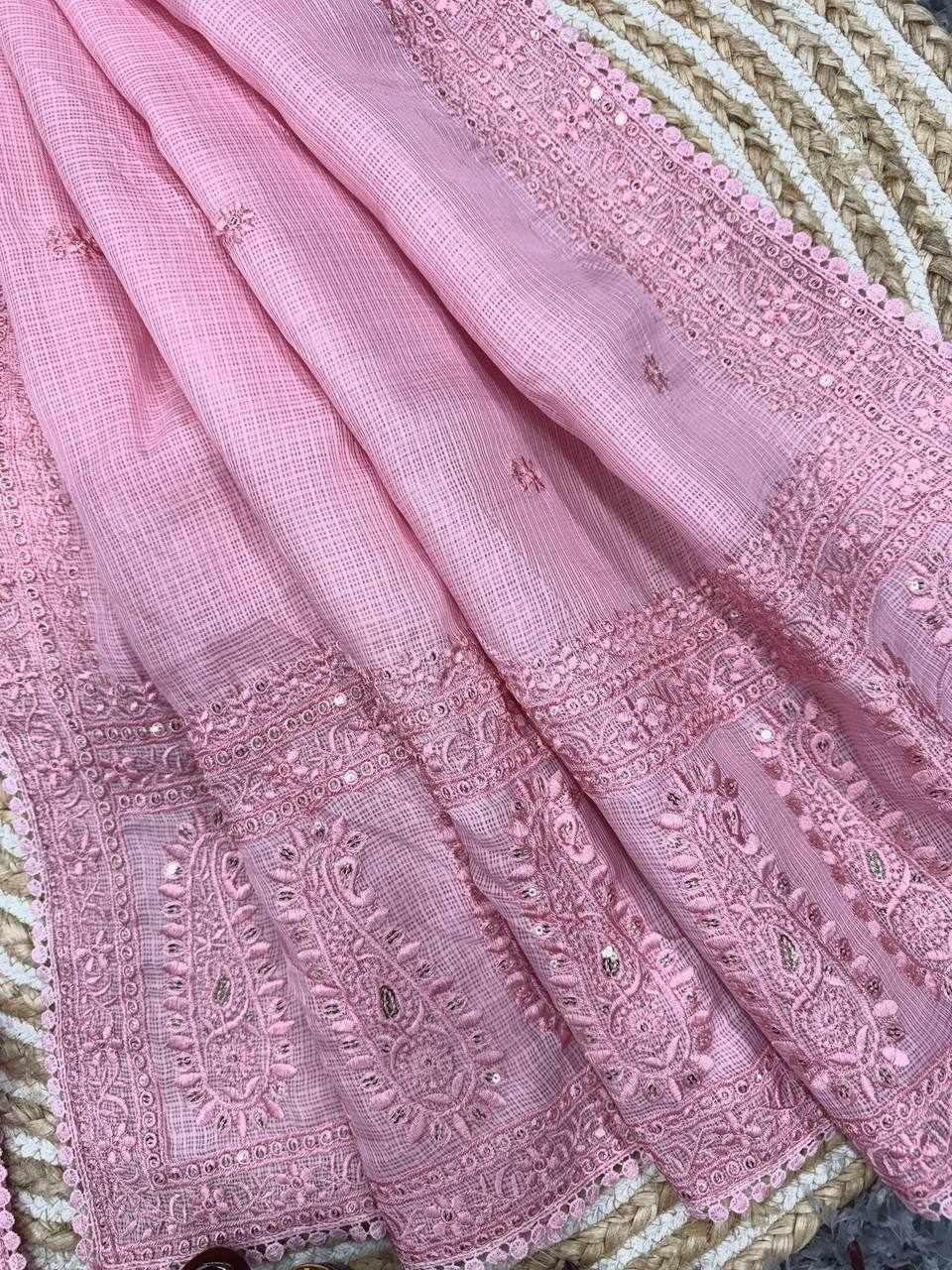 Turn heads at every occasion with this elegant Heavy Kota Chex Saree, adorned with delicate sequin and thread embroidery work. Finished with a fancy lace border, this saree brings together traditional craftsmanship and modern elegance—perfect for festive celebrations, parties, and formal events.