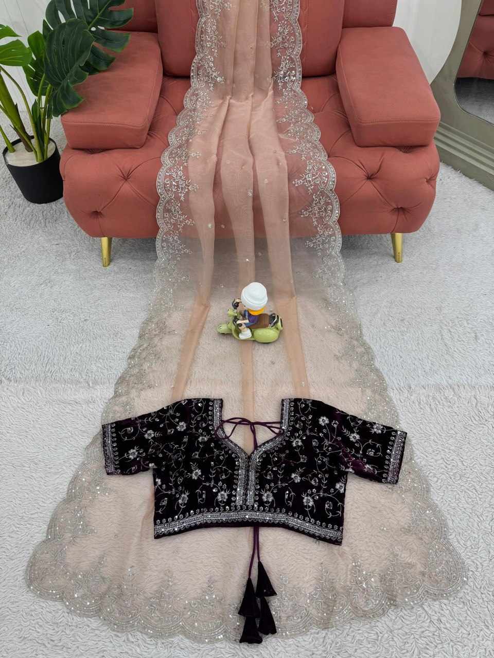 ๐Ÿงต Blouse: 9000 Velvet fabric with matching thread and sequence work (Unstitched, 0.80 cm cut)