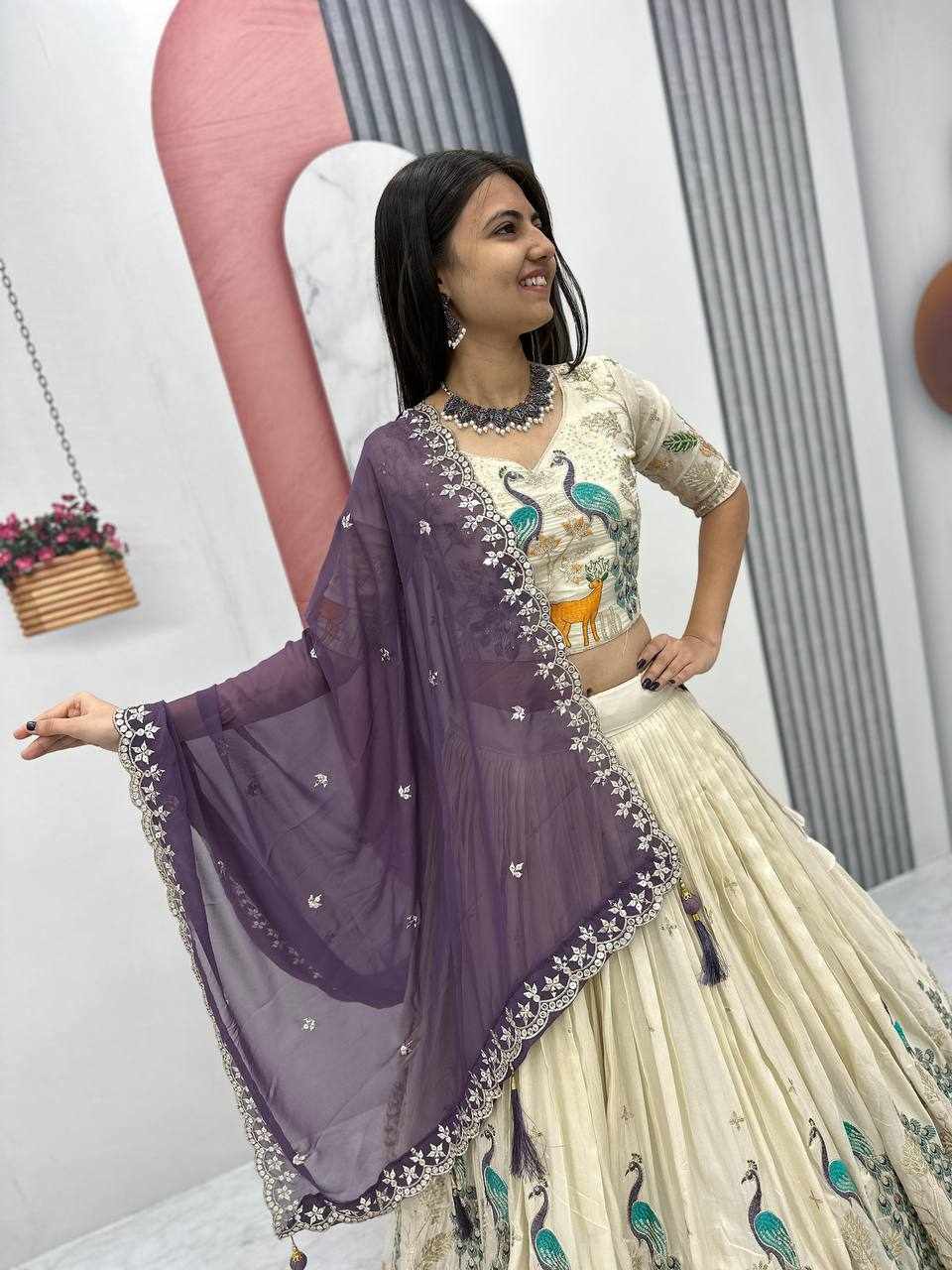 Step into elegance with the Wedding Wear Lehenga, crafted from premium pure tissue silk and embellished with intricate heavy thread and sequin embroidery. Designed for special occasions and weddings, this lehenga boasts a flattering 3.5-meter flair with attached canvas and cancan, ensuring a graceful drape and volume.